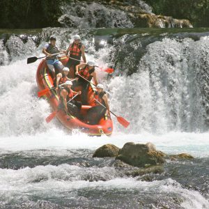 R2: Rafting-Abschnitt Costello – (Luke) Grmuša: interessanter und attraktiver Teil des Flusses Una. Geeignet für Anfänger und diejenigen, die sich zum ersten Mal im Rafting versuchen, die Länge beträgt 13 km, die Raftingdauer beträgt ca. 2,5-3 Stunden (mit Pause und je nach Wasserstand). Die Gesamtzeit von ca. 4,5 Stunden, Wasserklasse 2-3°. Dieser Rafting-Abschnitt ist ideal für Abenteuerreisende mit Kindern. Es ist für Familienausflüge geeignet. Stromschnellen und kleinere Wasserfälle sorgen für entsprechendes Abenteuergefühl.