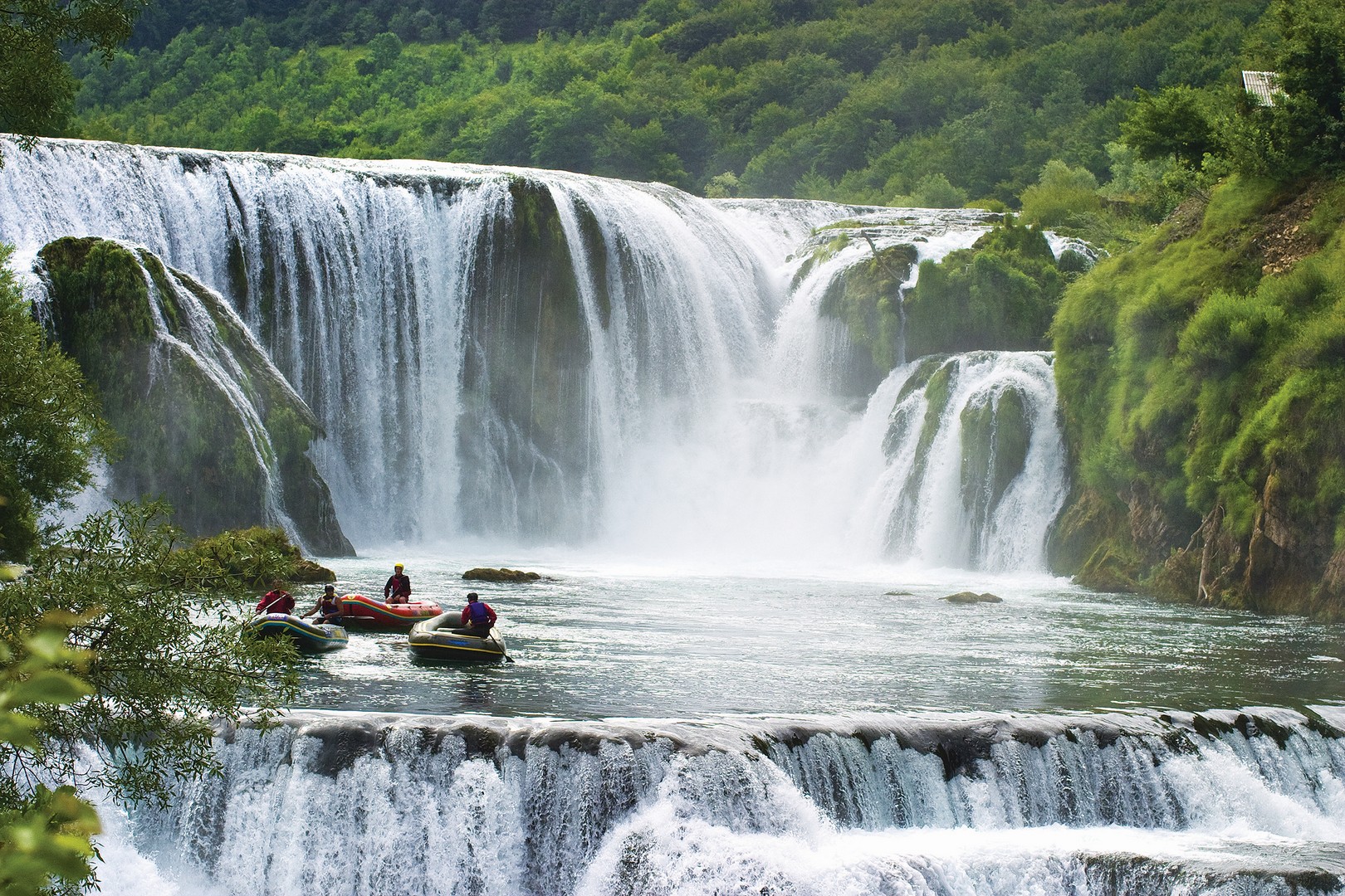 Rafting auf dem Fluss Una in Bosnien ist ein wunderbares Tagesabenteuer. Der Fluss Una ist eine natürliche Grenze zwischen Kroatien und Bosnien. Legenden besagen, dass Una, da es in dem kleinen Dorf Suvaja an Lika, Dalmatien und Bosnien grenzt, möglicherweise nach der römischen Anfangszahl „uno“ benannt wurde, um seinen Wert und seine Schönheit hervorzuheben. Eine Rafting-Tour auf dem Fluss Una in Bosnien wird Ihnen mit seiner unberührten Schönheit und dem klaren Wasser das Herz stehlen.