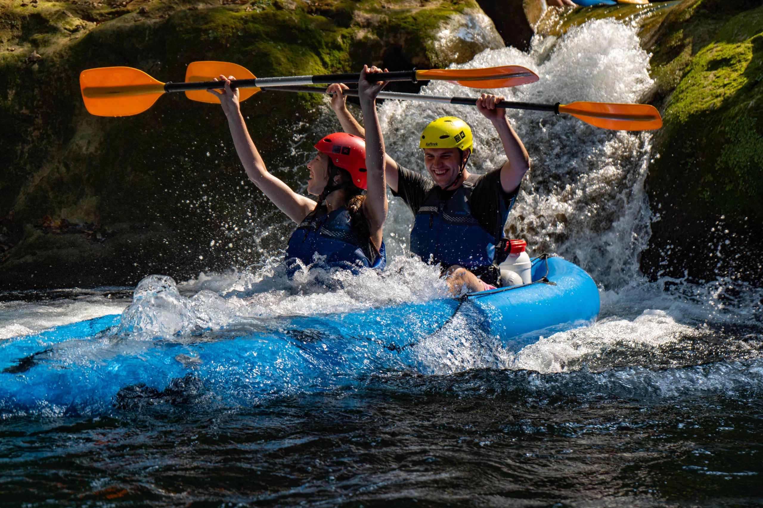 - Ausrüstung, die für die Aktivität notwendig ist (Boot, Paddel, Helm, Schwimmweste, Trockenfass; Neoprenschuhe und -anzüge sowie Regenjacke bei Schlechtwetter)