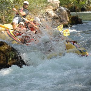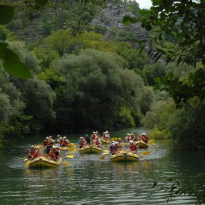 Rafting auf dem Fluss Cetina in Kroatien ist eine großartige Möglichkeit, die atemberaubende Landschaft zu genießen. Seine Wasserfälle, Höhlen und die dschungelartige Vegetation machen es zu einem Muss in Kroatien. Das warme mediterrane Klima trifft auf die Schlucht und schafft eine märchenhafte Kulisse. Auch wenn die Stromschnellen dieses Flusses relativ einfach sind, wird es für alle ein unvergessliches Erlebnis sein. Die Cetina Rafting Kroatien-Reise endet in Radmanove Mlinice. Heutzutage befindet sich in einer wunderschönen alten Wassermühle ein Open-Air-Restaurant, in dem Sie entspannen und ein traditionelles kroatisches Essen genießen können.