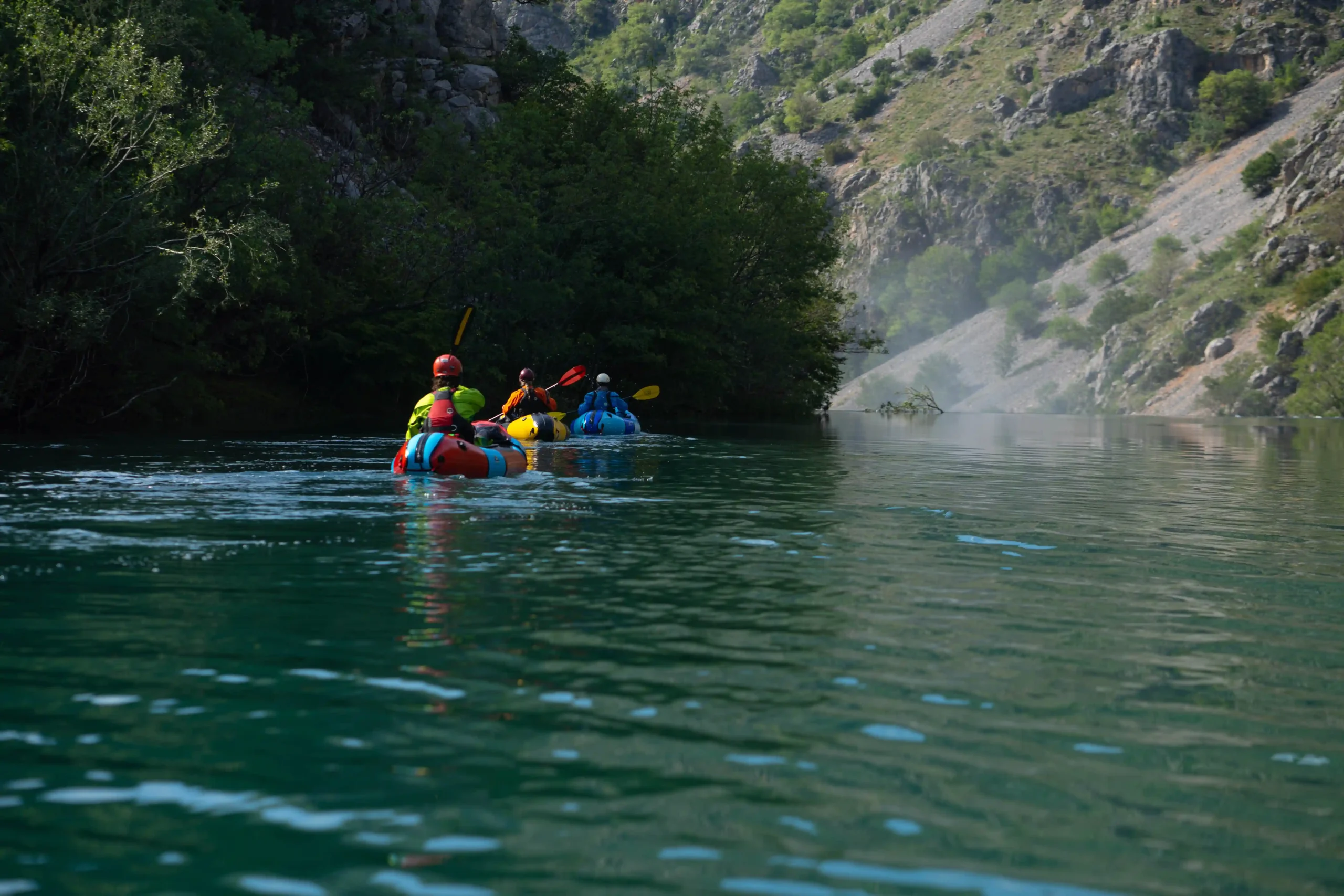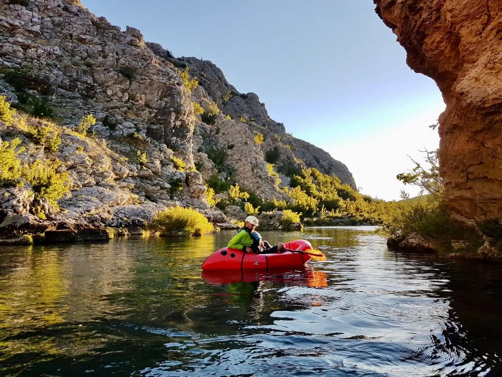 Our Packrafting Zrmanja tour is perfect for those who want to explore one of Croatia’s most stunning rivers in a unique and active way. Using packrafts, small one-person inflatable kayaks, you’ll have full control of your boat as you paddle through crystal-clear water, gentle rapids, and hidden canyons. Packrafts are lighter, more agile, and more fun than traditional kayaks — ideal for adventure seekers who love to connect with nature up close.