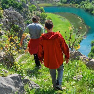 Once we arrive at Golubic village, we visit a local sheep and goat farm. First, we taste some local cheese and drinks. And after we take a short walk down the hill to Kuda’s Bridge. One of the nicest places in the hinterland of Zadar. The place is called Deveterci (or Niners). Due to its 9 small cascades that make the place so magical. Kuda’s Bridge has been built at the turn of the 18th to the 19th century. A legend says that a young guy called Kuda wanted to be closer to his loved one across the river. Therefore, he built the bridge. No previous experience is needed for this trekking Krupa Canyon adventure. Even children from 6 years of age, accompanied by parents, can participate. Don’t forget to bring your sun cream, picnic, and water. In case of colder weather take a long-sleeved shirt.