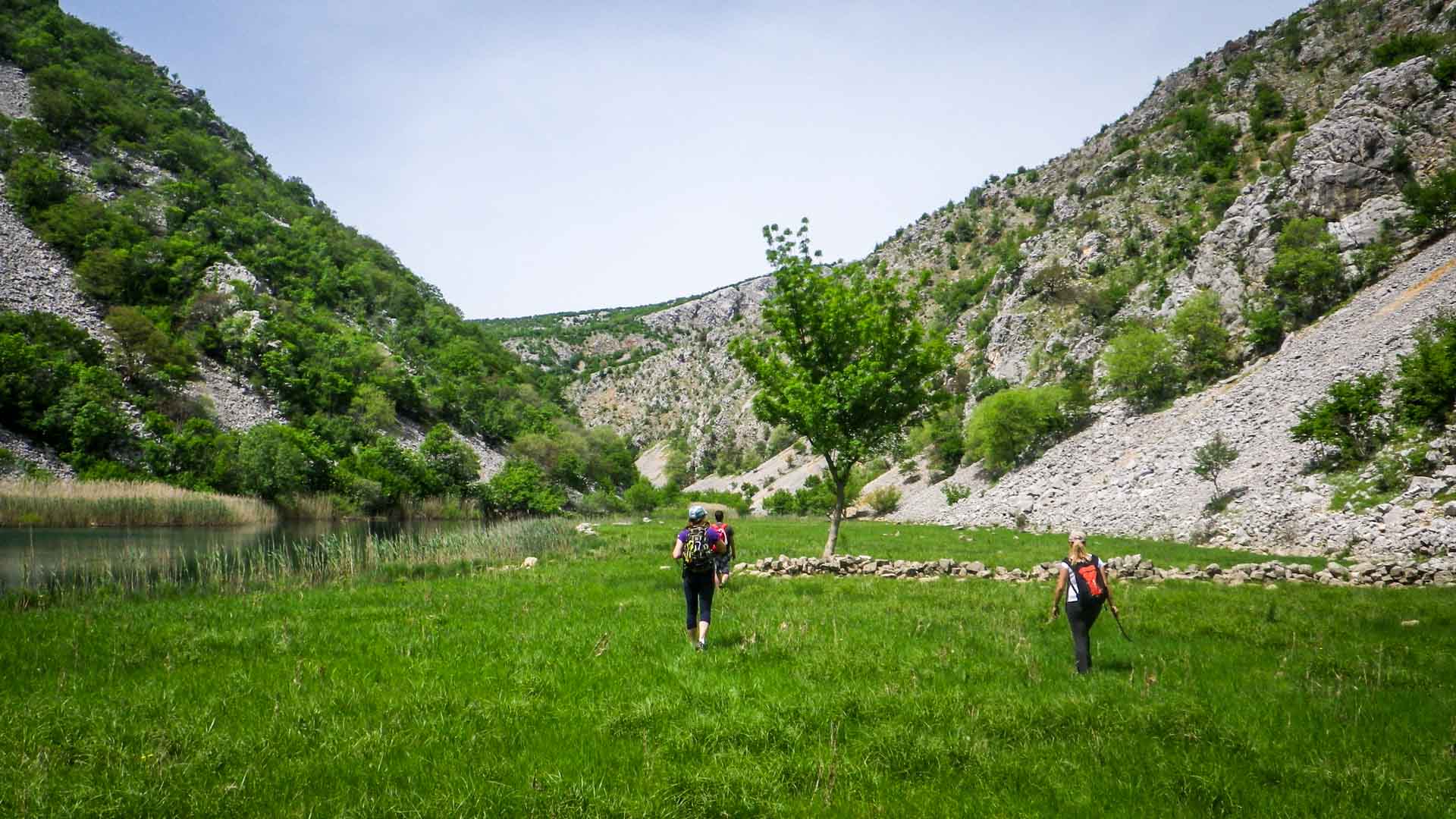 Canyon Krupa Trekking in Croatia – Through millenniums Zrmanja and Krupa rivers have carved a spectacular canyon and built magnificent waterfalls in what is now the Velebit Mountain Nature Park. These are two of the most beautiful rivers in Europe with green banks and perfectly clear water. We start trekking Krupa Canyon day adventure with a van drive to a little village called Golubic where very few people live nowadays. One of Croatia’s prettiest rivers is probably the tiny Krupa. Located just under the steep slopes of Velebit, this beautiful river stretches from its lovely spring all the way through a deep canyon where it meets Zrmanja – another beautiful karst river.